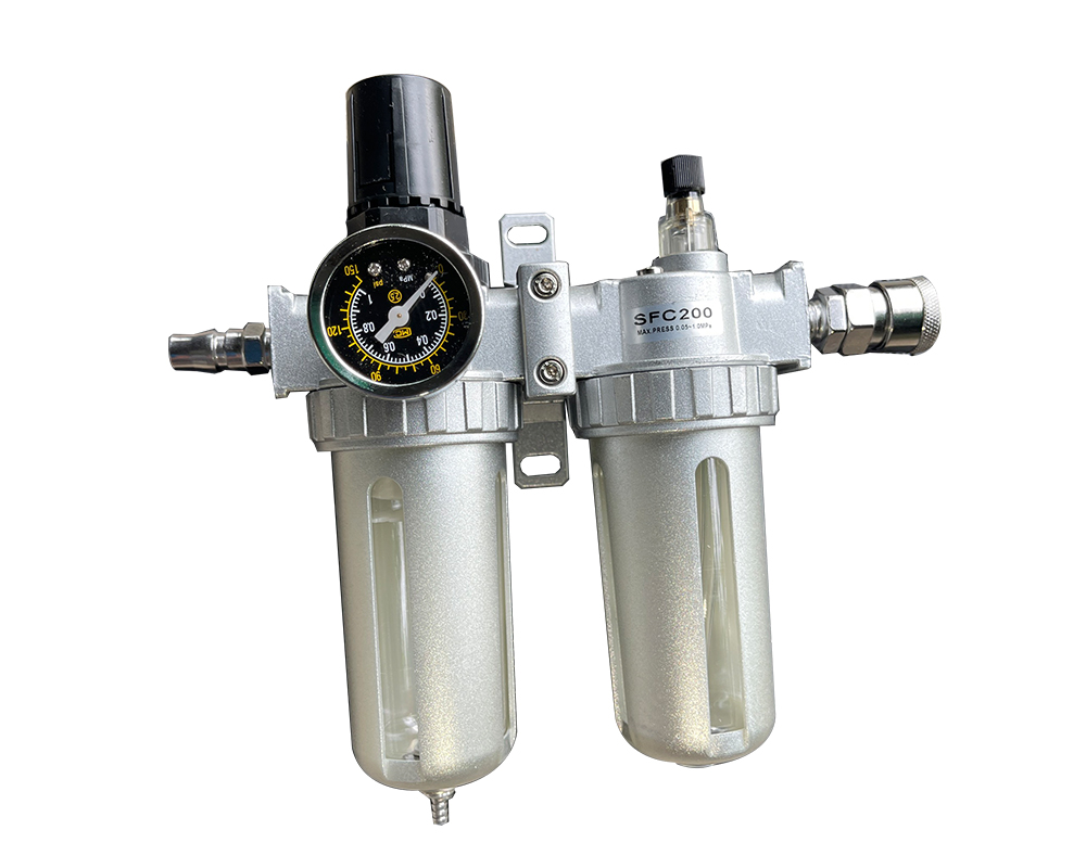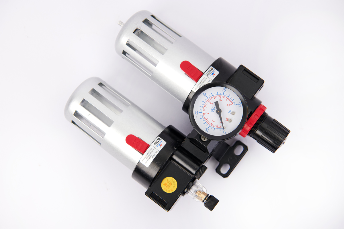- Bộ lọc khí hay còn được gọi là cốc lọc khí, bộ tách nước là thiết bị không thể thiếu nếu muốn sử dụng khí sạch, khí không có nước, không dầu của máy nén khí. Bộ lọc khí đôi loại to là sản phẩm chuyên dùng cho các máy nén khí có công suất từ 0,5hp tới 7.5hp. Với 2 bình lọc, bộ lọc khí đôi giúp lọc khí được triệt để hơn, sạch hơn
